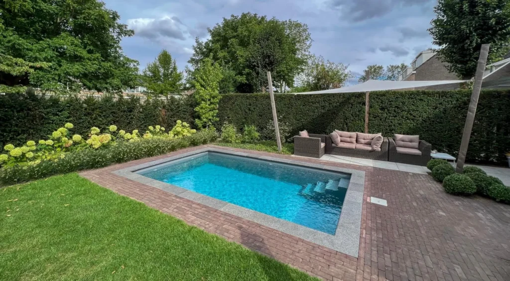Een plunge pool is een klein, ondiep zwembad dat speciaal is ontworpen voor koeling, ontspanning en lichte lichaamsbeweging. In tegenstelling tot traditionele zwembaden, die vaak flink wat ruimte in beslag nemen, is een plunge pool compact en past daardoor vrijwel in elke tuin. Met een gemiddelde grootte tussen de 2×2 meter en 4×6 meter past een plunge pool perfect bij de kleinere binnenplaatsen of stadstuinen die typisch zijn in Nederland.
